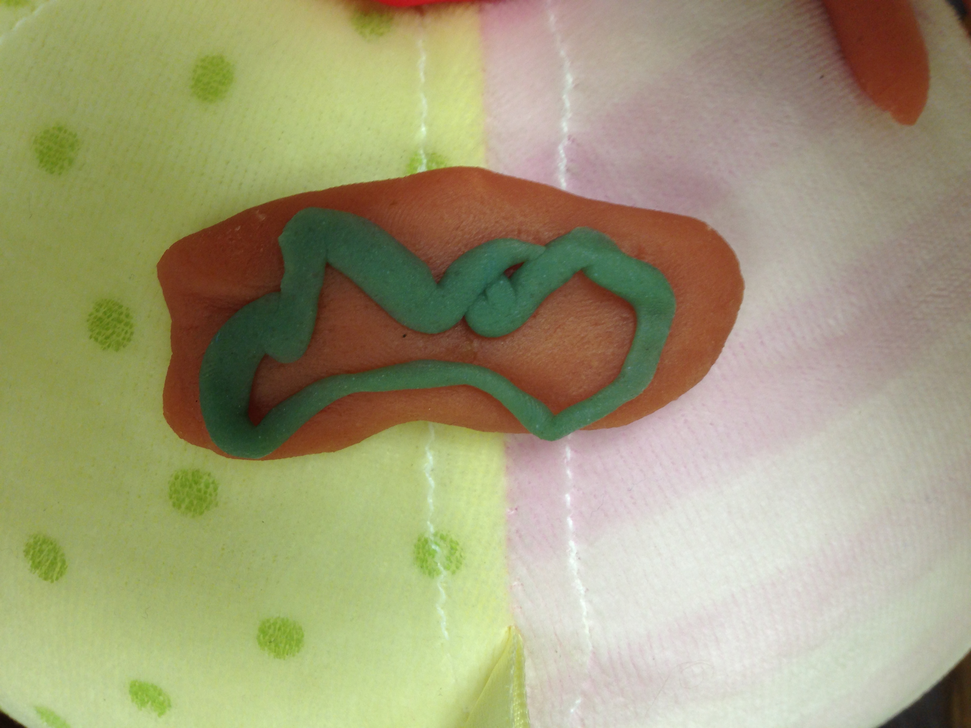 STEP 10: Connect an alligator clip to the “Space” key on the front of the Makey Makey. (You reprogrammed this to be an Enter key.) Connect this alligator clip to a Play-Doh shape of your choice. You will touch this after touching an organelle.